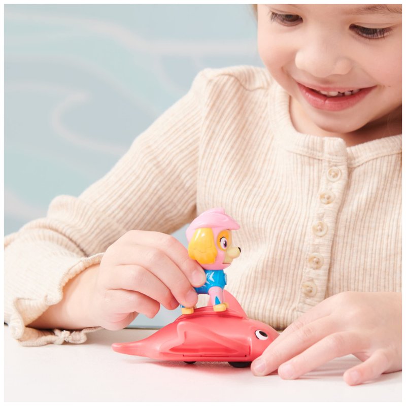 - EXCLUSIVE SKYE ACTION FIGURE: Wearing her pink Aqua Pups wetsuit, with true-to-show fish-scale details and a super cool divers helmet, Skye is ready to roll out and save the day!