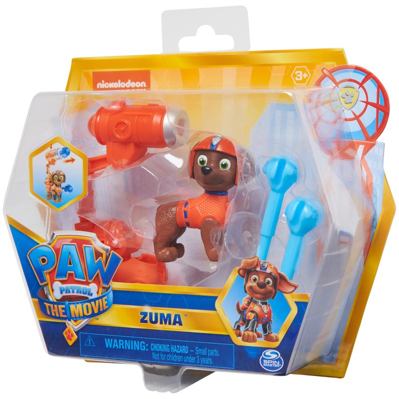 - COLLECTIBLE ZUMA ACTION FIGURE: Zuma features realistic movie details, fur detailing and wears his classic uniform. Once the backpack has been clipped on, Zuma is rescue-ready in his all-new movie uniform