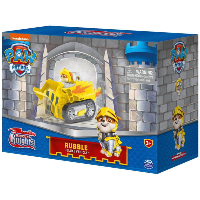 - WORKING TOOL: Rubble’s dragon-inspired Rescue Knights vehicle is ready for action Push down on the PAW badge to activate his articulated rescue tool and use it to clear out obstacles