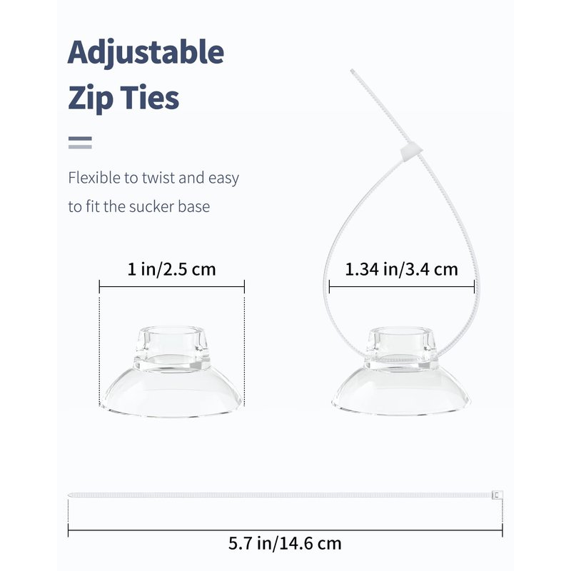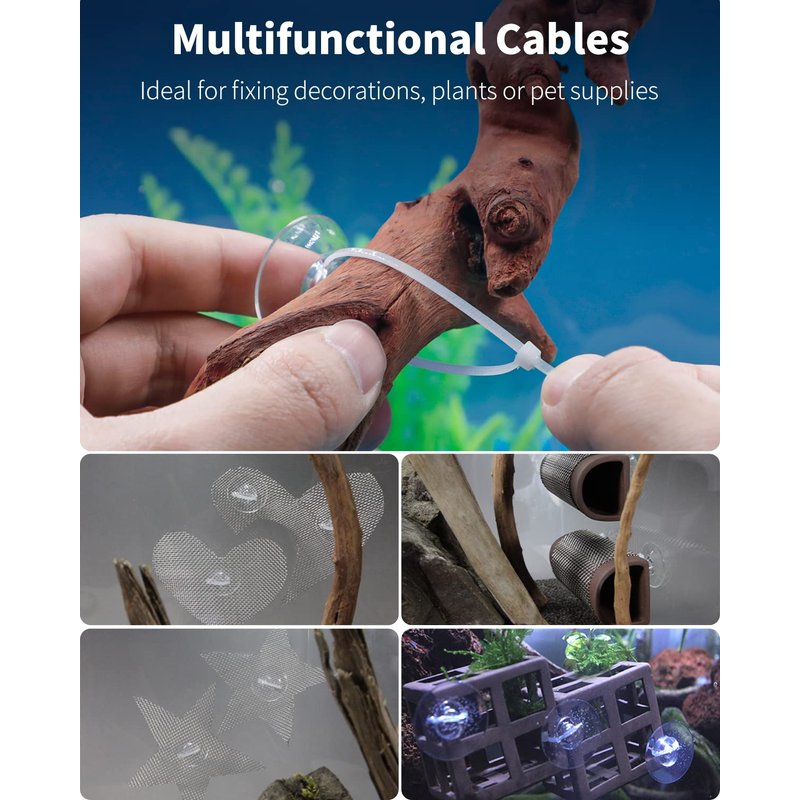 - Simple to Use: Bind your target object with the zip tie, then pass the tip of the tie through the hole on the other end to tighten it, and finally stick the sucker to the fish tank.