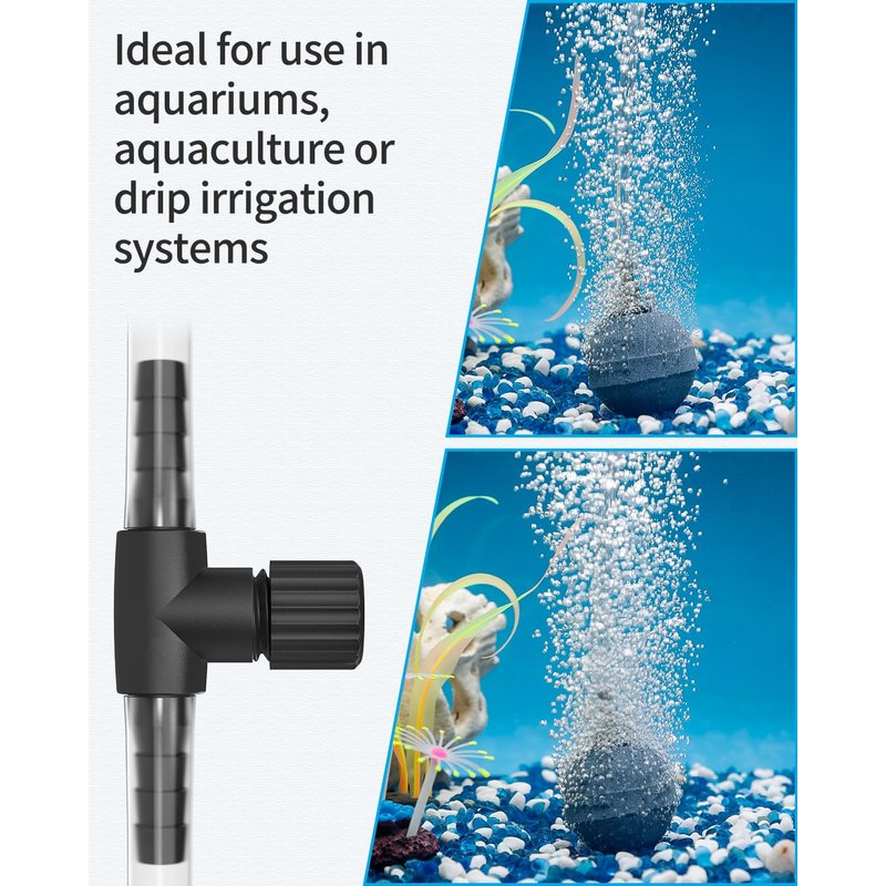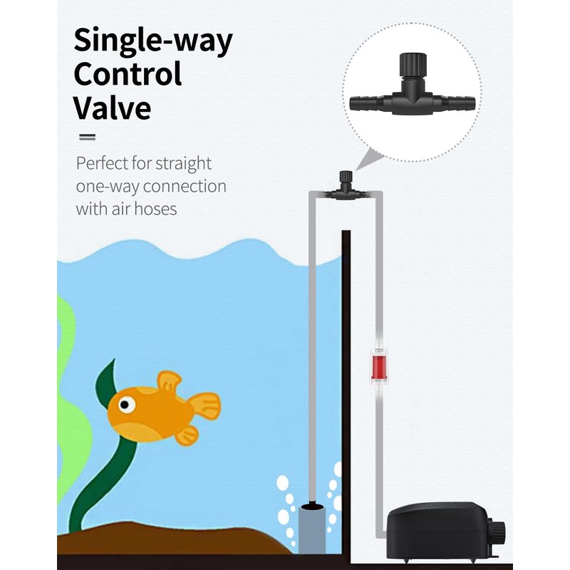 - Single Way Valves: T-shaped structure with a straight single way for air to get through. Great to be used in fish tanks, aquariums, aquaculture, gardening or drip irrigation system.
