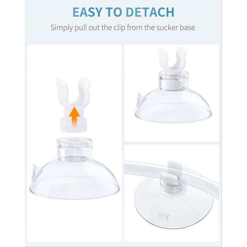 - Tough Plastic Clips: Each suction cup comes with a sturdy clip which firmly clamps the tubing to keep it in place. It is also rotatable to easily adjust the position of tubing.
