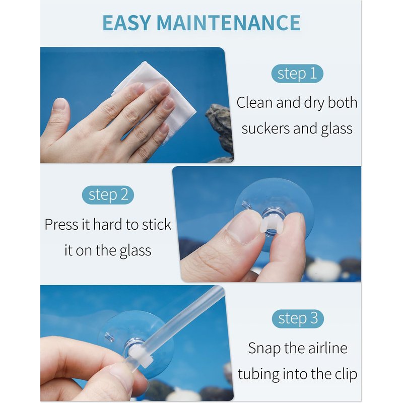 - Strong Suction: Made of soft and flexible plastic material, the suction cups can stick tightly to your fish tank, aquarium or other glass surface for stable holding.
