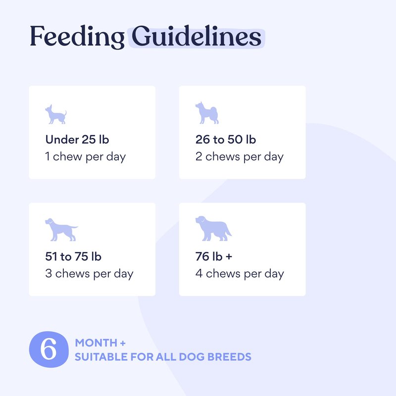 - TASTY TREAT: Doubling as a tasty treat, our chews are certified delicious by over 95% of dogs that try them! For the other 5%? You can crumble them onto their meals and it'll be just as effective!