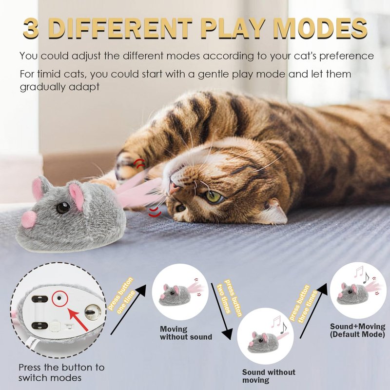 - Excellent Interactive Cats Toy Gift: Mice have a natural attraction to cats. This cute cat toy combine looks and mobility to engage cats’ s multiple senses and keep them away from boredom. Whether it's a Christmas gift or a New Year's gift, this mice cat toy is a perfect choice