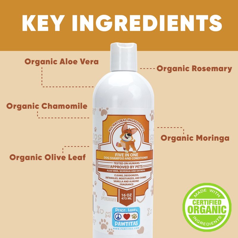 Pawtitas Oatmeal Shampoo for Dogs Made with Certified Organic Natural Herbs Essential Oils Natural Dog Shampoo and Conditioner 16 OZ Vanilla & Almond