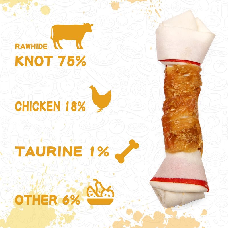 - Taurine Added: Give your dog this taurine contained 6.5" Chicken Rawhide Bones to help improve brain development, retina protection and heart improvement of your little pup
