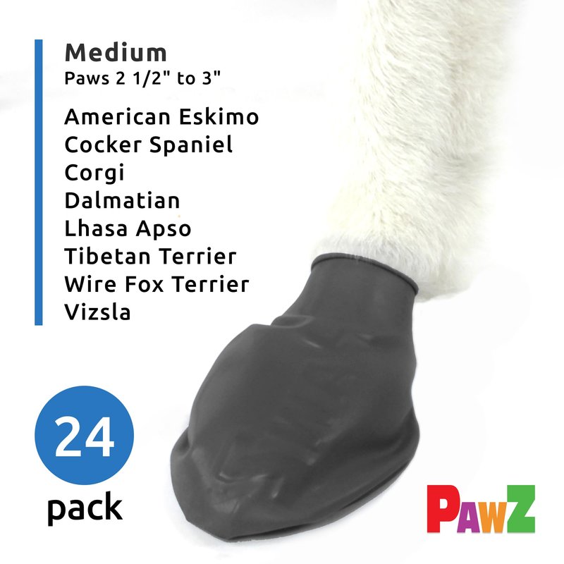 PawZ Rubber Dog Boots for Paws up to 3", 24 Total (2 Packs of 12) - All-Weather Dog Booties for Hot Pavement, Snow, Mud, and Rain - Waterproof, Anti Slip Dog Socks - Medium, Black