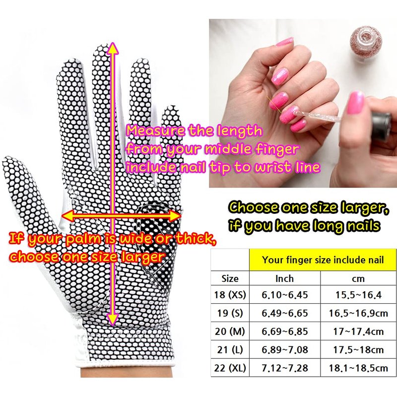 - Measure the length from the middle finger include nail tip to the wrist line; if your palm is wide or thick, choose one size larger