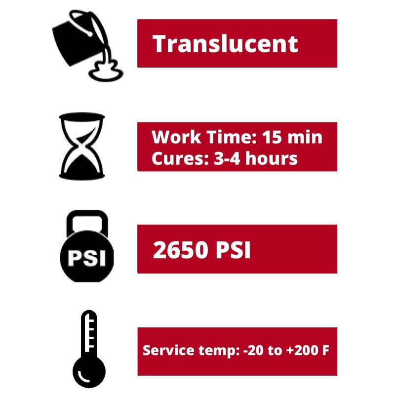 - Paste cures translucent to blend in with bonded