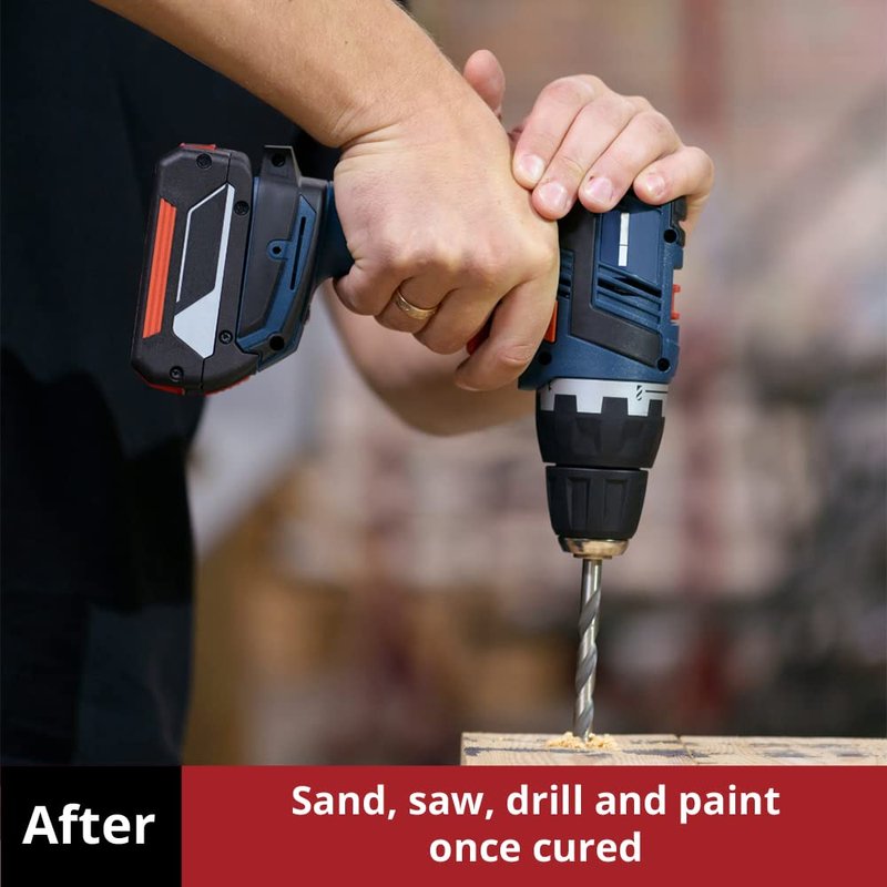 - Kit includes epoxy adhesive paste, dispensing gun, and mixing nozzles to bond a range of materials, including wood, metal, glass, brick, concrete, and fiberglass