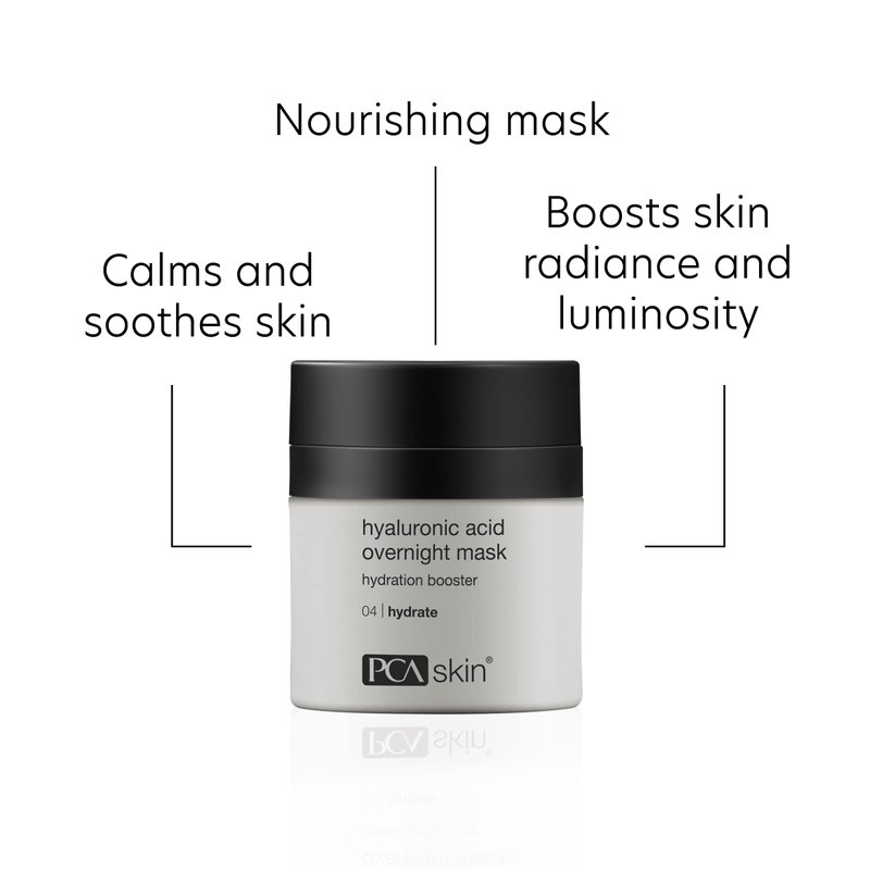 - PCA SKIN Hyaluronic Acid Overnight Face Mask is a hydrating skincare face mask made with Hyaluronic Acid that revitalizes dry skin with powerful overnight hydration and can help significantly reduce deep wrinkles