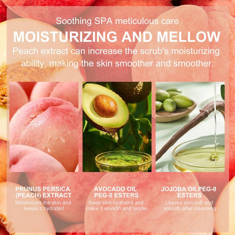 Peach flavored face and neck scrub, gentle exfoliation, deep cleansing of pores, dirt and oil, leaving skin refreshed and non-greasy, daily care cream for men and women 1.76oz