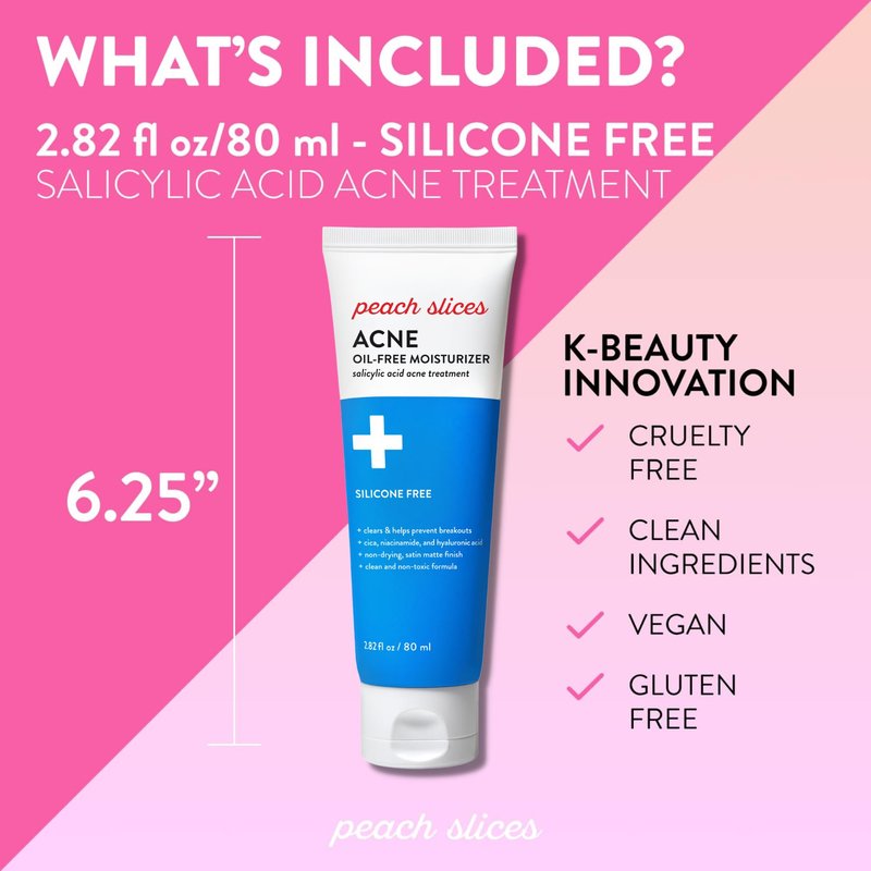 Peach Slices | Acne Oil-Free Moisturizer | Satin Matte Finish | 0.5% Salicylic Acid | Hyaluronic Acid | Prevents Breakouts | Pore Minimizing | Clear Skin | Silicone Free | Face Moisturizer | 2.8 oz