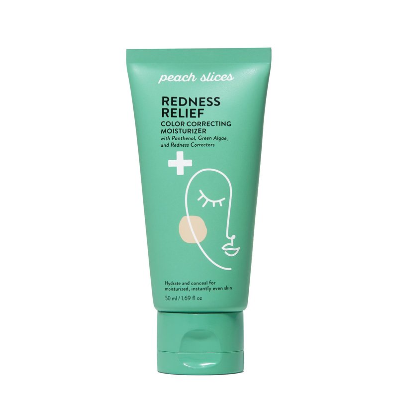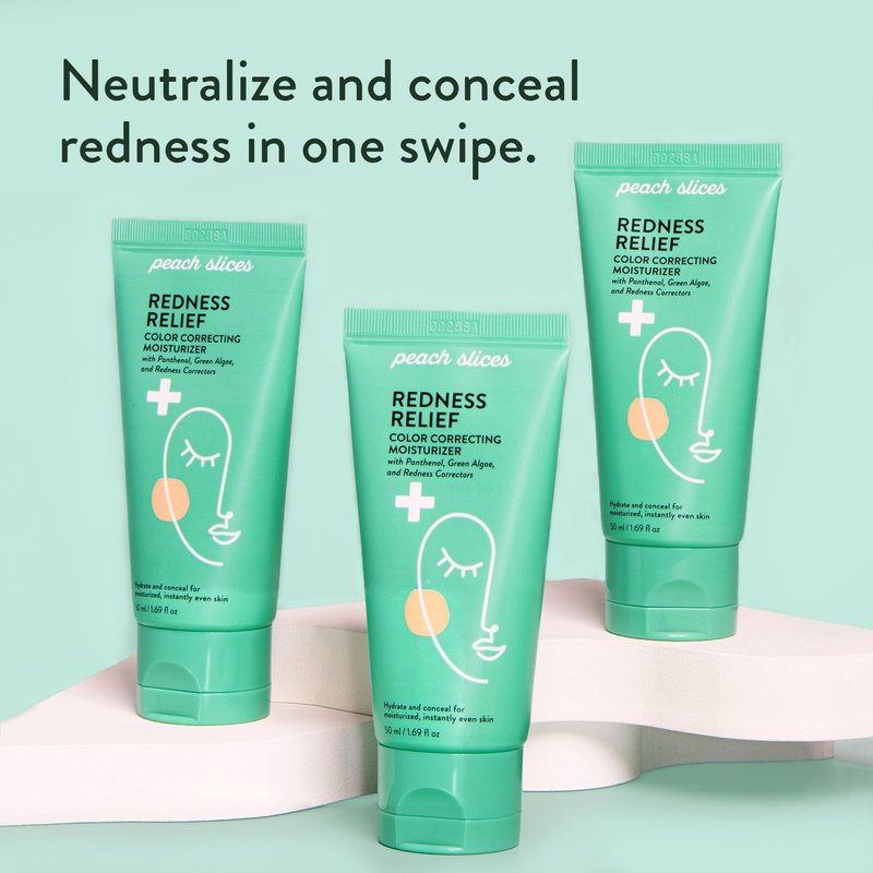 - Peach Slices Redness Relief Color Correcting Moisturizer instantly conceals and corrects redness while deeply moisturizing and calming skin. Clean Color Correcting Technology intelligently adjusts color to leave red, irritated skin looking even, and smooth.
