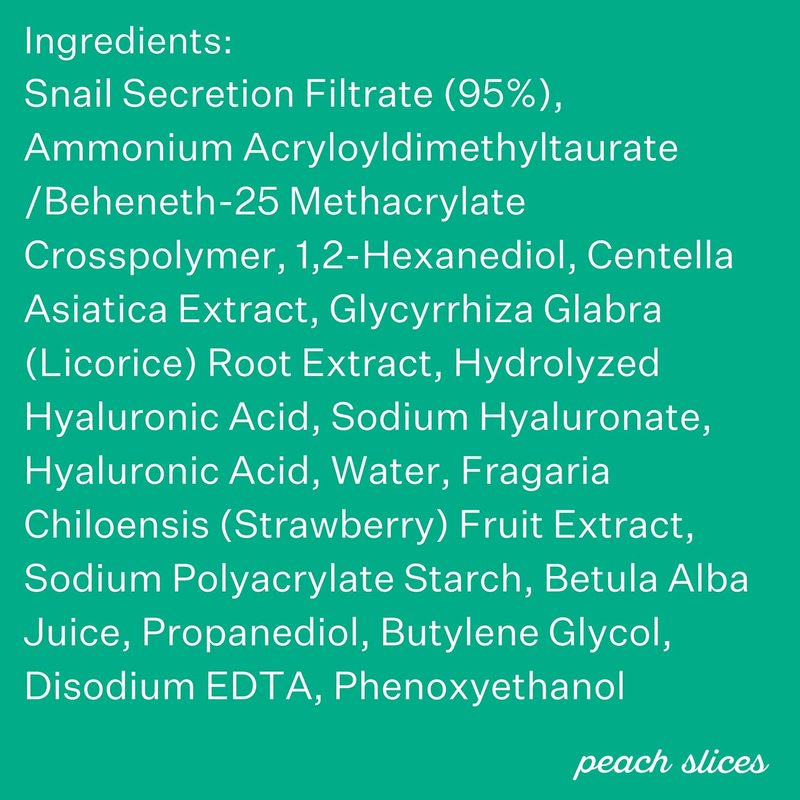 Here at Peach Slices, we combine the best K-Beauty ingredients with the latest K-Beauty innovations to deliver formulas that will make a big difference for your skin. If you love your K-Beauty ingredients, snail mucin probably tops your list for its powerful-yet-gentle results. When it comes to skincare ingredients, much like power couples, individual ingredients are superstars but together, they can be unstoppable. This fast-absorbing toner is your fast track to hydrated, blemish-free skin and an even glow with 95% snail mucin and cica. Meet the ultimate power couple: two celebrated and time-tested K-Beauty ingredients, snail mucin and cica, uniquely come together to give you super-sized results. This one-of-a-kind breakthrough pairing helps clear pores, zap zits, calm signs of redness, and strengthen your skin barrier. And of course, no snails are harmed! Peach Slices is cruelty-free, Leaping-Bunny certified. The formula is clean, effective, and free of filler ingredients to bring your skin only goodness. The results? Clear, smooth skin that glows.