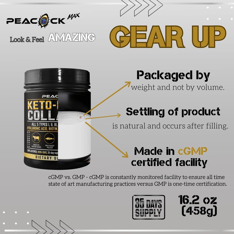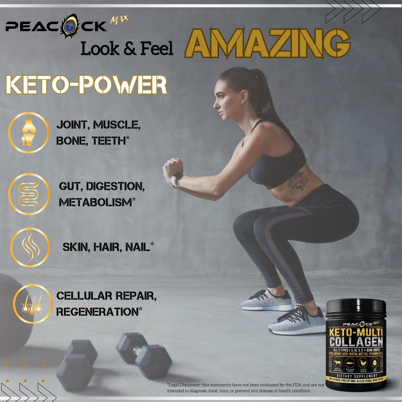 Peacock Max Hydrolyzed Multi Collagen Peptides Unflavored Protein Powder (1 Pack, Keto Coconut MCT)