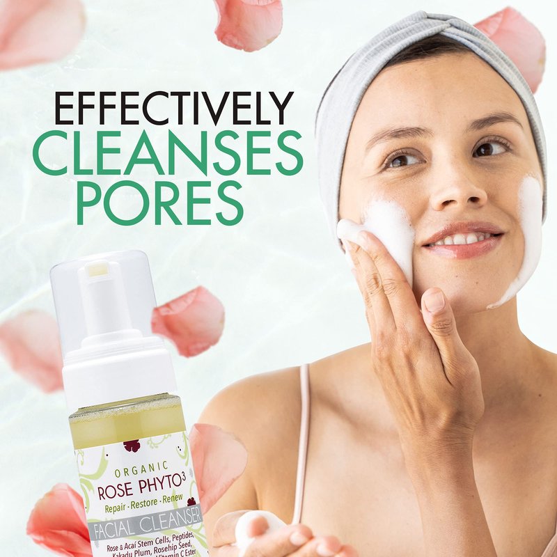 - ROSE PHYTO³: Infused with Rose Phyto³, along with rose and acaí stem cells, peptides, Kakadu plum, and Vitamin C, this organic face wash cleanser provides a luxurious and calming scent, offering a relaxing and enjoyable skincare experience.
