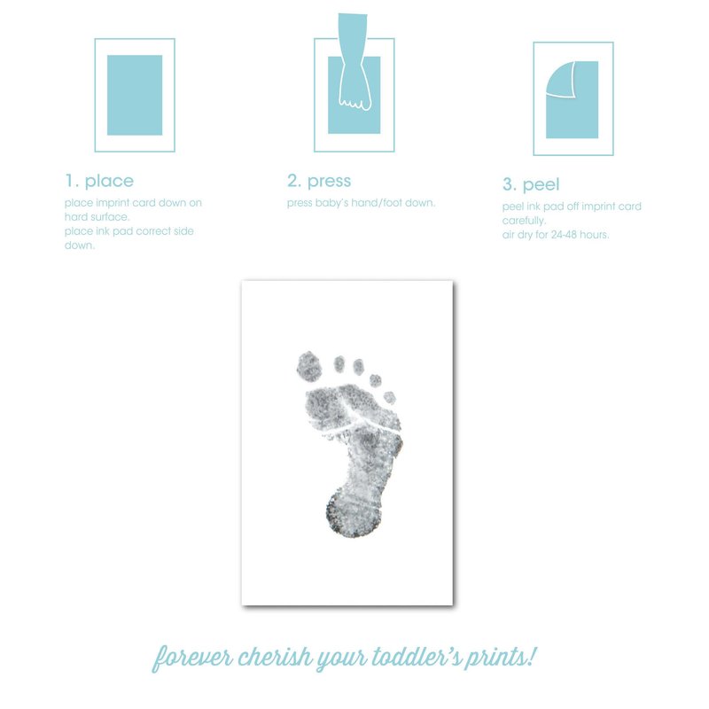 - Book dimensions: 9”W x 10.7”H x 0.6”D; Cover photo insert: 3”W x 3”H; Baby print insert: 3”W x 4”H, 100% baby safe ink, two-time use maximum, for newborns only