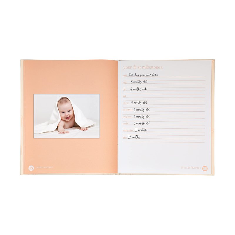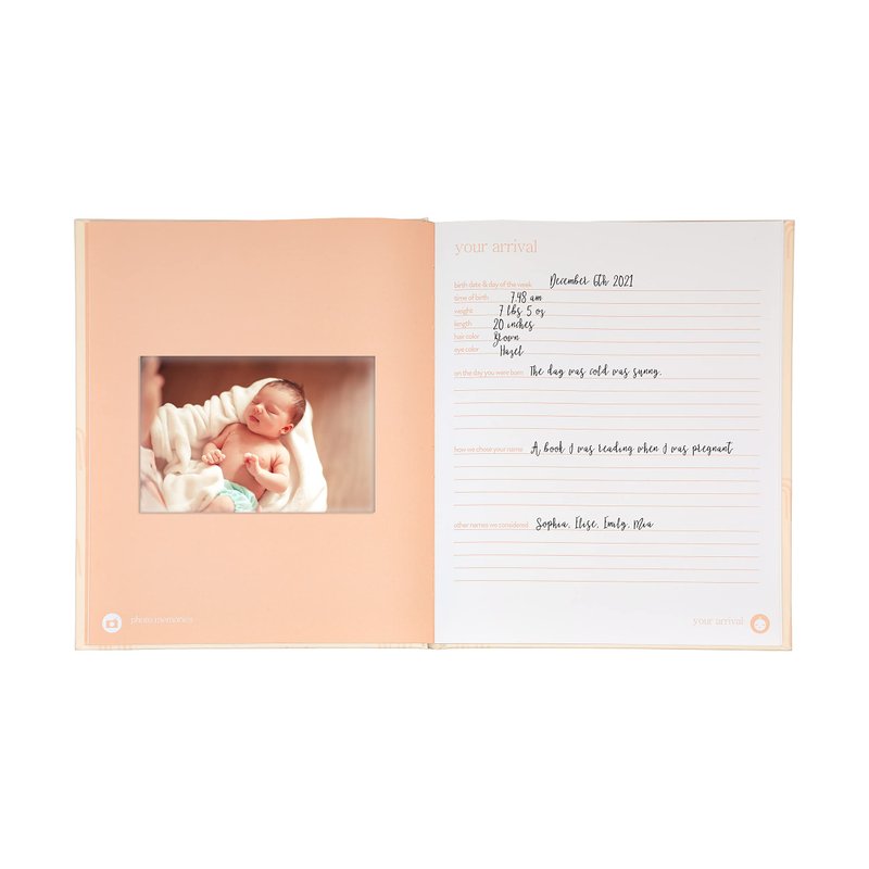 - Pearhead’s gender-neutral blush rainbow baby book is the perfect keepsake for new moms to record all of their baby girl’s or baby boy’s precious memories and moments throughout baby’s first year and beyond!