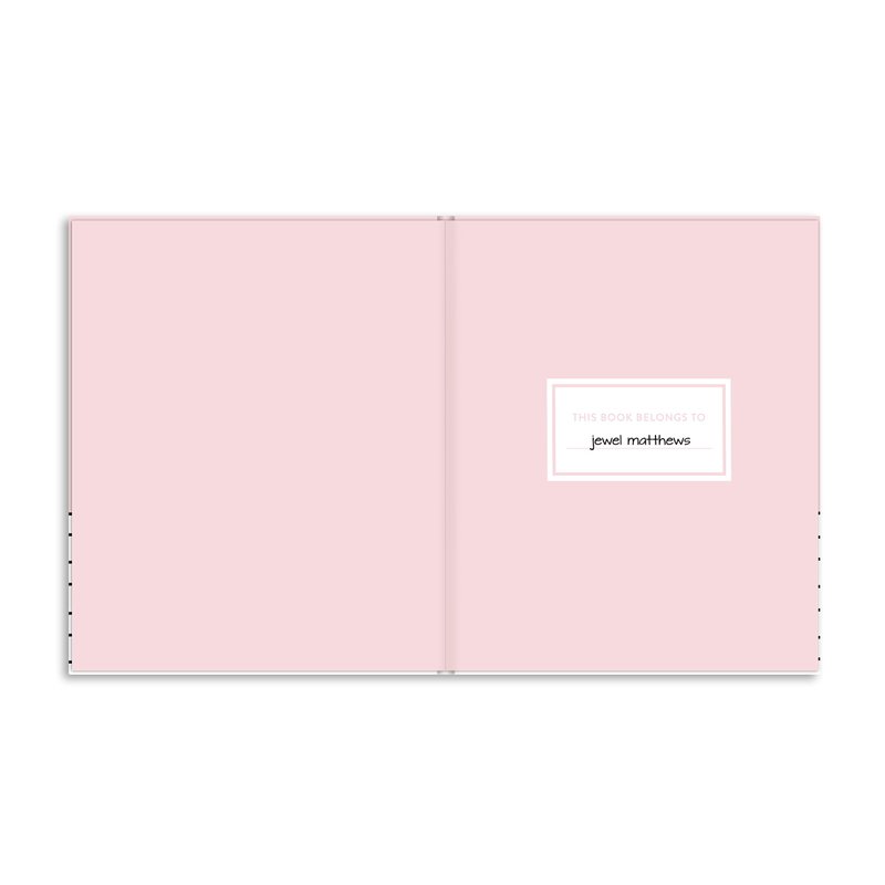 - Pretty in Pink: Introducing the 'Hello Beautiful' baby book, with its charming light pink fonts and 50 pages, perfect for capturing and sharing your precious stories. The stylish light pink cover, adorned with white and black stripes and a gold foil arrow, includes a 3” x 3” slot for your favorite baby photo.