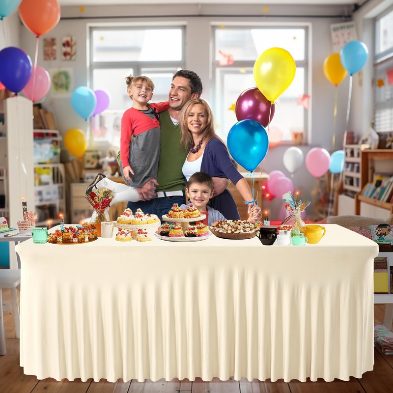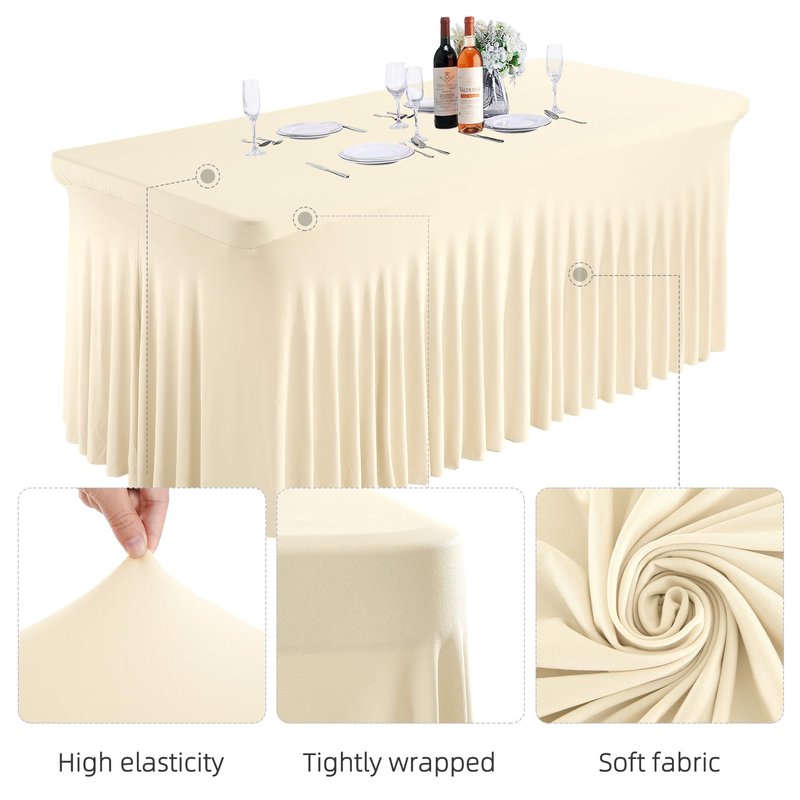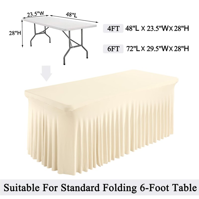 Pearled Ivory Spandex Table Skirts Table Covers for Rectangle Tables 6ft, Pearled Ivory Stretchable Folding Table Cloth for Weddings, Birthday Parties, Banquet, Baby Shower