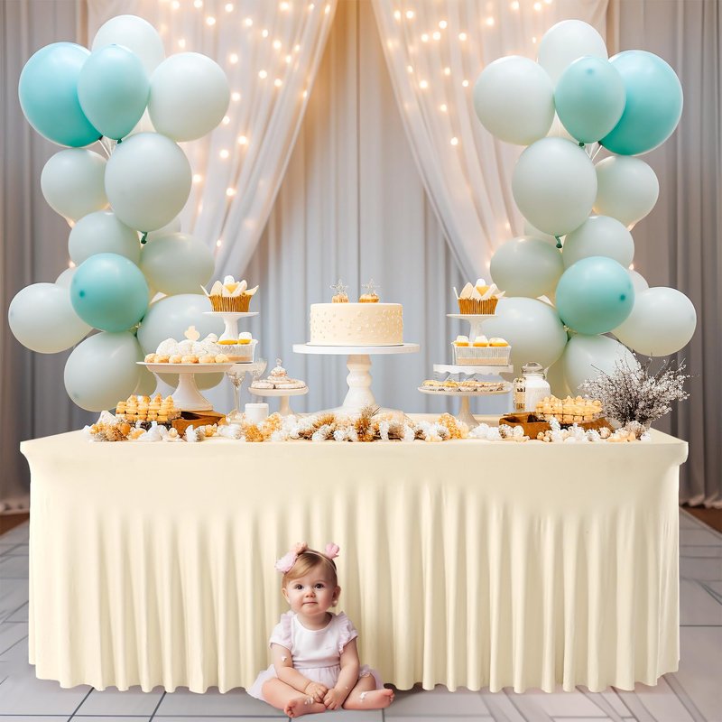 - Can be Used in any Occasion:Spandex table skirt perfect for banquet, any display, craft shower birthday parties, baby shower, for your business, wedding,buffet table,dinning table, gift table , serving table, trade show, folding table, reception table
