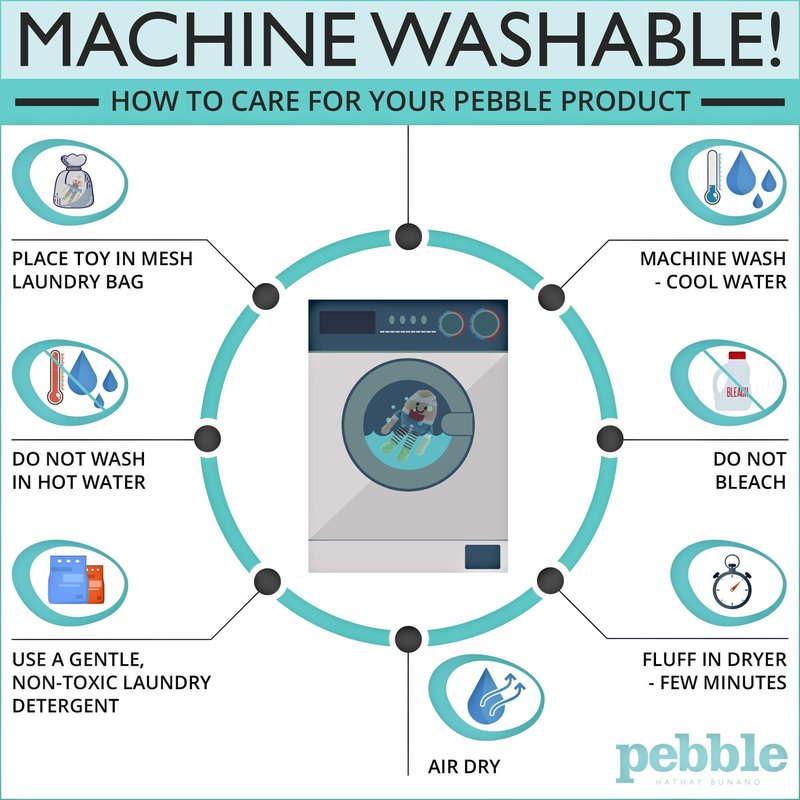 - MACHINE WASHABLE - For best results, place your Pebble toy in mesh bag and launder with cool water and non-toxic detergent. Fluff in dryer for a few minutes and then air dry.