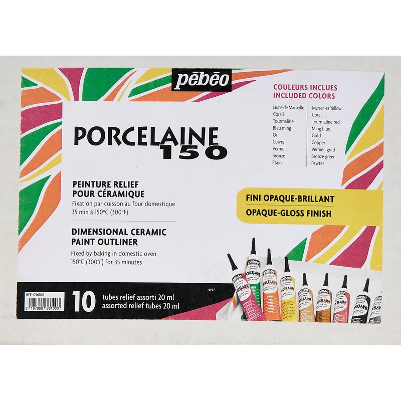 Pebeo Porcelaine 150 China Paint Set of 10, 10 Count (Pack of 1), 10 Assorted Outliners, 6 Fl Oz