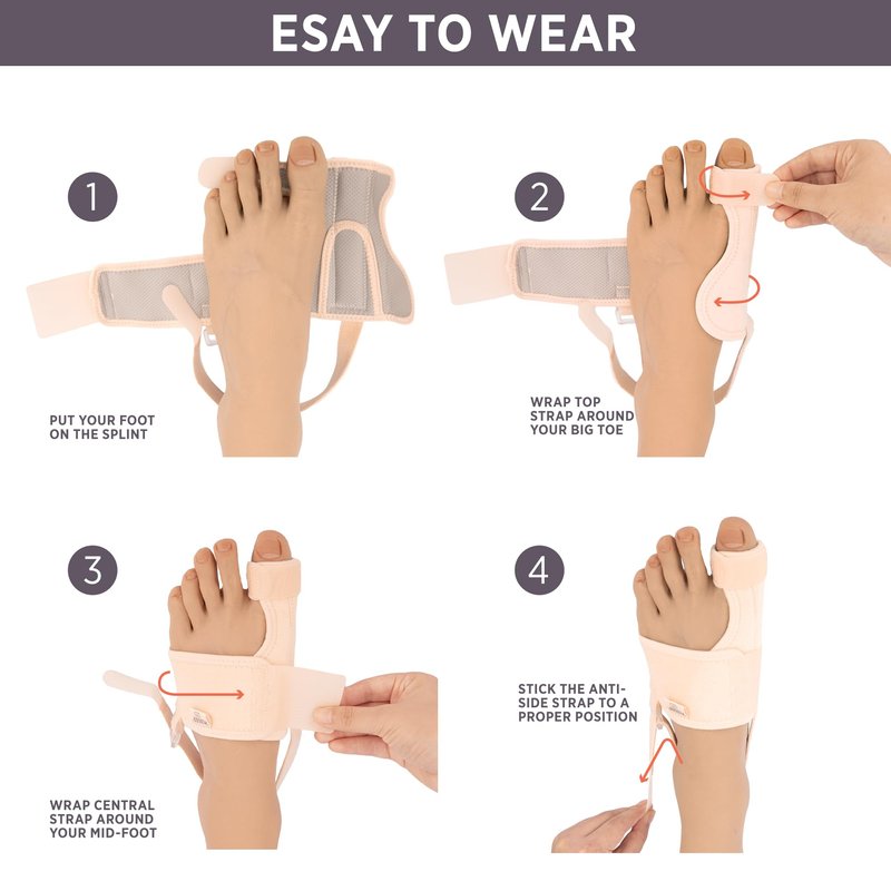 - SIMPLE ELEGANT DESIGN: Our bunion corrector features a minimalist design that eliminates unnecessary elements. The cotton-lined, skin-friendly material ensures a comfortable experience. The hook and loop strap around the instep prevents slipping off during sleep, ensuring your big toe stays in the correct position.