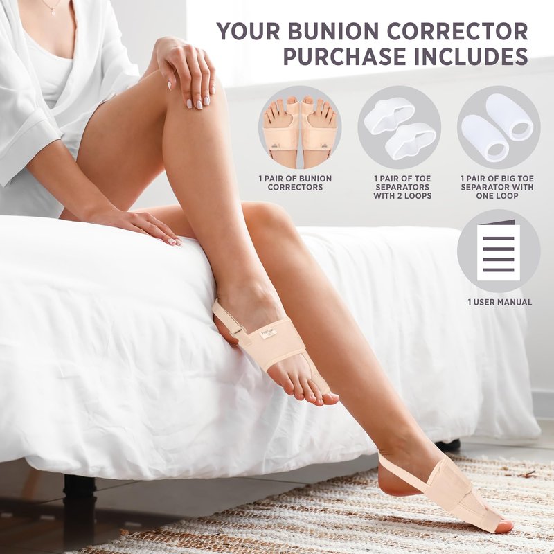 - 24HRS CARE DAY-NIGHT SUPPORT KIT: The carefully-selected 6-piece set includes Night Support: bunion correctors (1 pair), Daily In-Shoe Support: gel toe separators (1 pair), and gel big toe sleeves (1 pair). Our toe gel separators are designed for maximum flexibility, providing soft and stretchable comfort. They are also easy to clean and reuse. The gel big toe sleeves help absorb pressure and friction from shoes, offering all-day protection.
