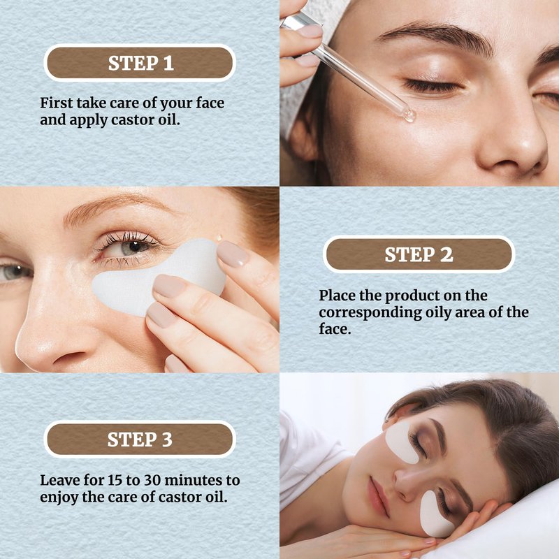 - HOW TO USE THE PATCH EASILY AND COMFORTABLY: Apply castor oil evenly under the eyes, then apply a piece of eye patch to the castor oil, which helps to promote the absorption and decomposition of castor oil, Just 5-10 minutes a day.