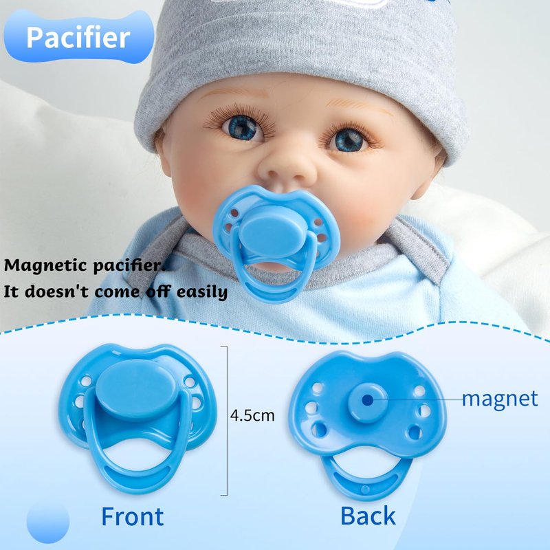 - 【Magnetic Pacifier】the magnet pacifiers are suitable for reborn dolls with magnets in their mouth, and the magnets can be attracted in the doll's mouth.If cannot be attracted,please reverse the magnets in the mouth of the reborn dolls, and then the magnetic pacifiers can be applied normally.