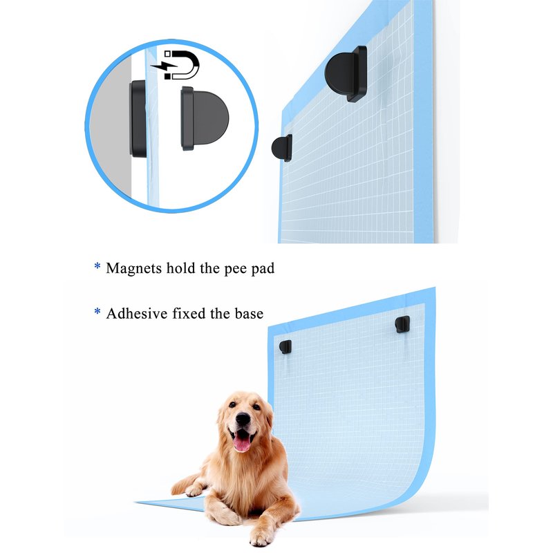 - How To Use It? - Choose a potty training area and stick the base of the pee pad holder on the wall, then secure pee pad with the magnet cover, easy to lock and release. Tips: adhesive is suitable for sticking on smooth and flat walls, such as wooden walls/tile walls/marble walls/glass walls and so on.