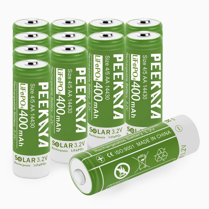 PEEKAYA (12-Pack) 14430 Rechargeable Battery LifePo4 3.2V 400mAh for Ourdoor Gardan Solar Light, Eco-Friendly and Safe