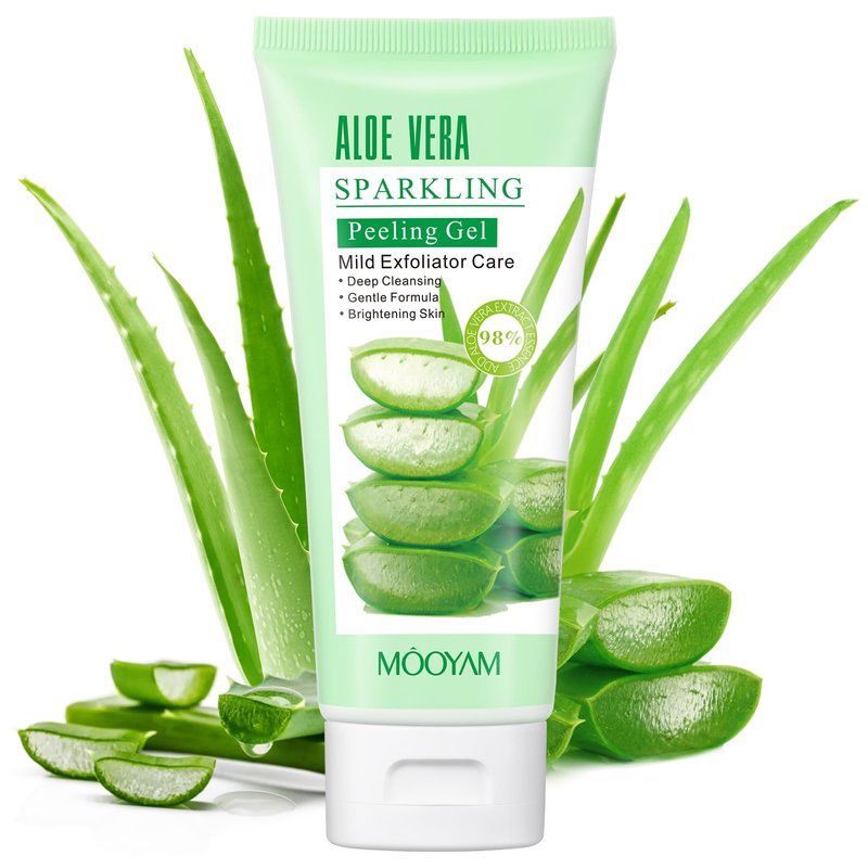 - EXFOLIATING GEL: Our aloe vera sparkling peeling gel does not use abrasive particles or beads. it will not cause redness or irritation and will promote safe exfoliation. If you have sensitive skin, try this gentle exfoliating gel.