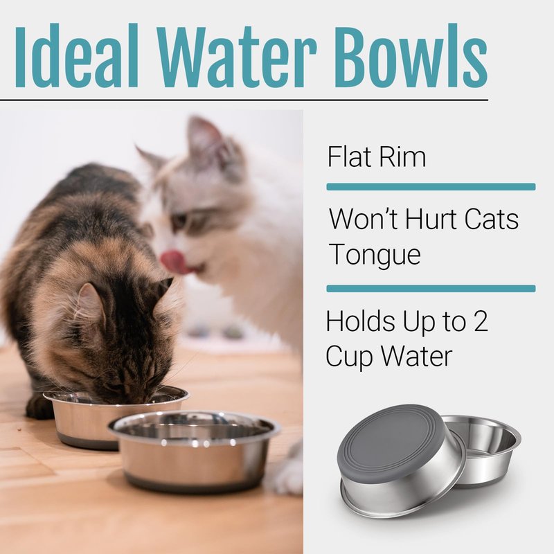PEGGY11 Stainless Steel Metal Cat Bowls, Nonslip Rubber Bottom, Dishwasher Safe, Easy to Clean - 2 Pack, Each Holds 2 US Cup