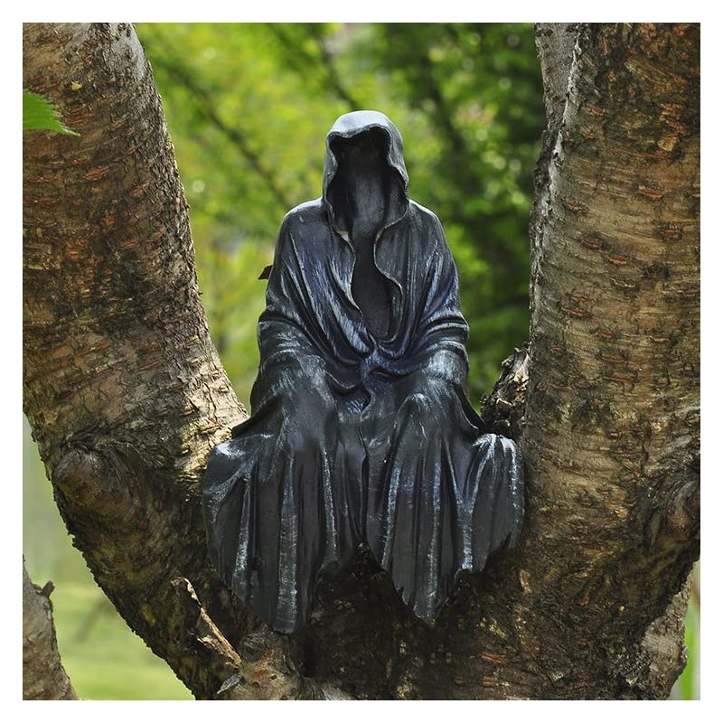 - Spook your guests with the 5.9" Mysterious Black Robe Statue - perfect for outdoor garden decorations! Made from high-quality resin, this figurine features a creepy Master of Secrets sitting in a black robe.