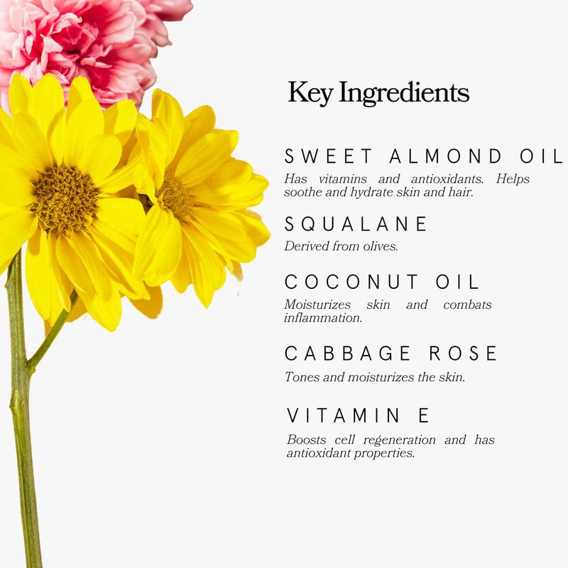 - Quick Absorption, Easy to Use: The nourishing dry oil derived from sugar cane, intense moisturizing organic sweet almond oil, and plant extracts in Spicy Almond with flower particles support the rapid regeneration of your skin.