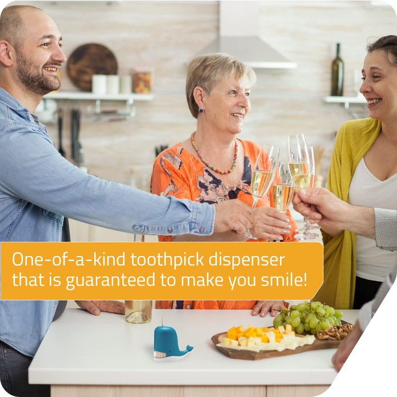 PELEG DESIGN Jonah Toothpick Holder - Cute Whale Toothpick Dispenser - Fun and Decorative Plastic Toothpick Holder for Easy Access During Meals or Gatherings