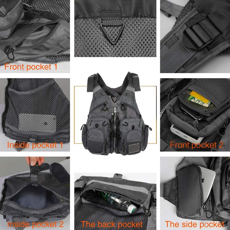 - 【𝐌𝐨𝐫𝐞 𝐂𝐡𝐨𝐢𝐜𝐞 𝐰𝐢𝐭𝐡 𝐌𝐮𝐥𝐭𝐢 𝐏𝐨𝐜𝐤𝐞𝐭𝐬】: Vest multi-pocket design accommodates a wide range of fishing gear and tools to meet the diverse needs of your fishing process. Large and expandable to store more gears (pliers, fishing lure boxes, wallet, phone, keys and other accessories you need in your life).
