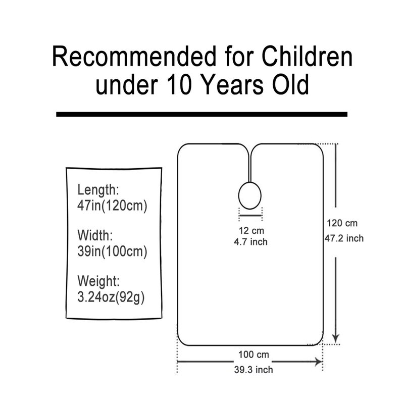 - Full Coverage: Product size can ensure that cover kid’s clothes well whether they stand or sit, which prevent them from itching or dirty when hair cutting. It is 100cm/39in ×130cm/51in (Laying Flat).