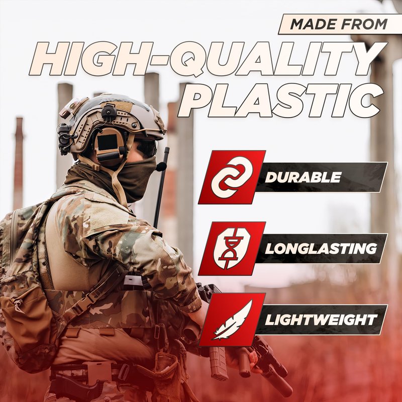 - High Quality Arc Rail Adapter: These tactical helmet ear protection shooting earmuffs are made of premium quality plastic material which is very sturdy and durable for long lasting use. This arc rail headset adapter is wear resistance and scratch resistance and ensure longer and easy connection.