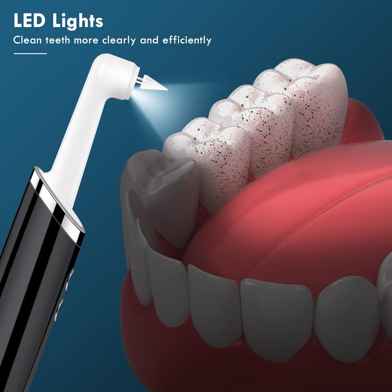 - LED Light and Unique Design: The scaler is equipped with LED light under the polishing head that allows safe visibility while cleaning your teeth. The shiny anti-skid design on the front complements the smooth material of the body, making it comfortable to hold and more fashionable.