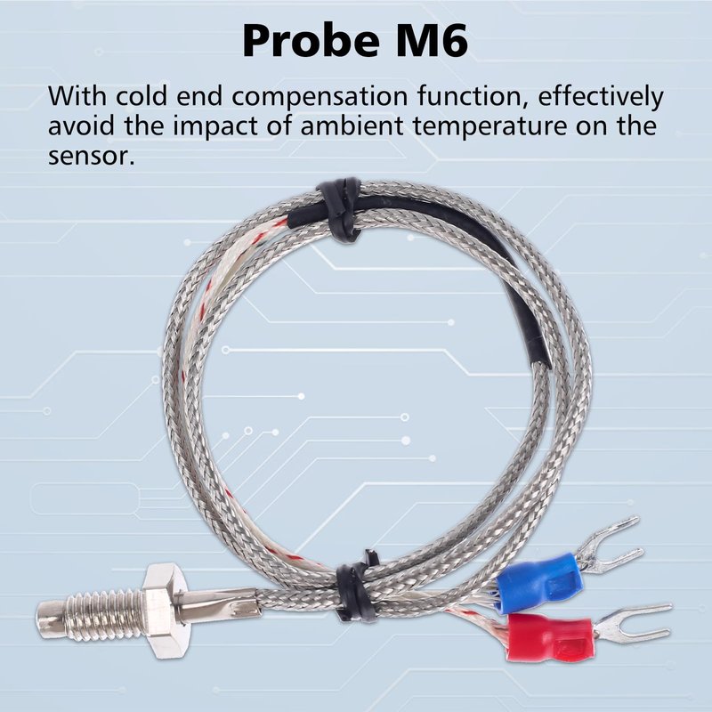 - Industrial Grade K-type Thermocouple M6 Probe: The thermometer utilizes a K-type thermocouple sensor that incorporates a cold junction compensation function, effectively minimizing the influence of ambient temperature on the sensor and resulting in highly accurate temperature measurements. However, due to the wide temperature measurement range, some measurement errors may occur, which is considered normal within a range of ±10℉/1%.