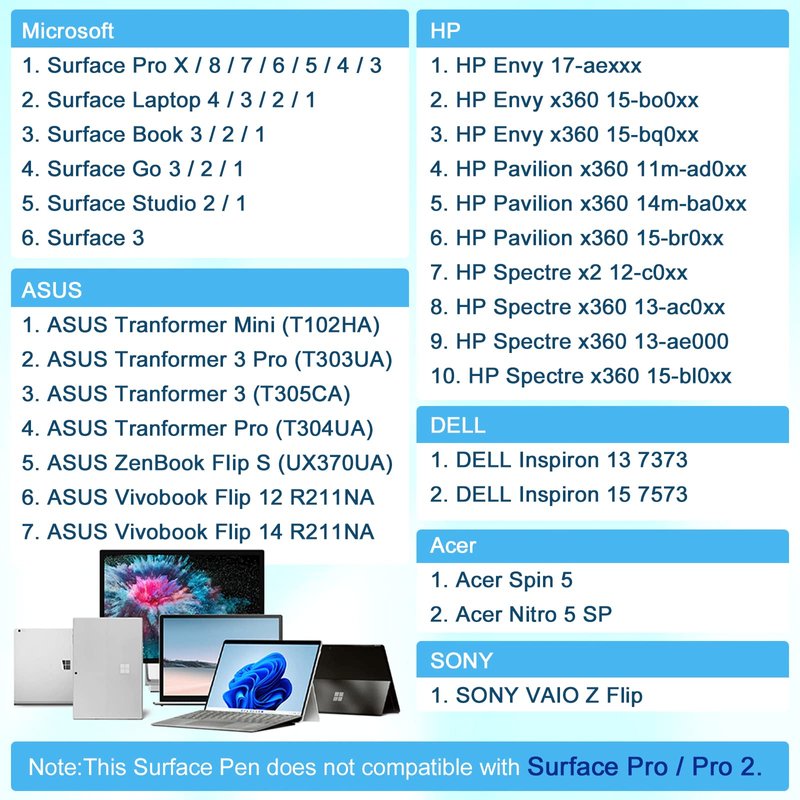 - 【Wide Compatibility】 Weikdury stylus pen compatible with Surface Pro 9/X/8/7/6/5/4/3, Go 3/2/1, Book 3/2/1, Laptop 5/4/3/2/1, Studio 2/1, Microsoft 3 tablet computer. (Not Compatable with Surface Pro 2/1)