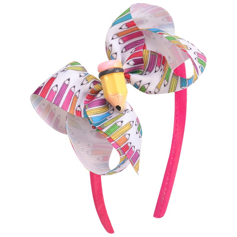 Pencil Headband Back to School Hair Bows Clips Yellow Headband Blackboard Headbands For Girls Hair Bow Clips Head Boppers No Slip Headdress School Hair Bands Gifts 1PCS