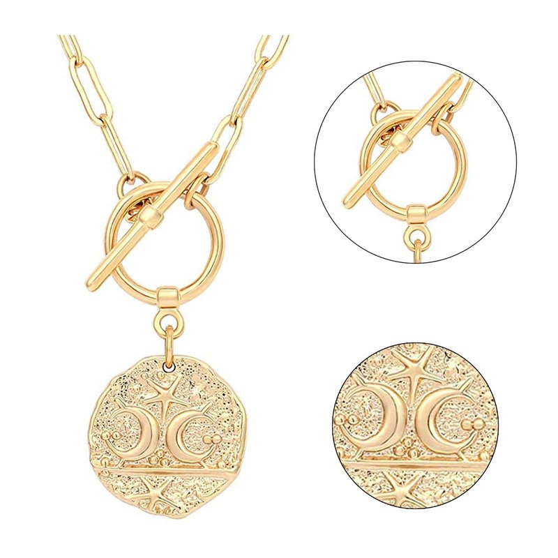 The medallion pendant necklace is the perfect centerpiece for your gold layers. This gold chain necklaces perfect balance of minimal and statement-making it also great for wear on its own.