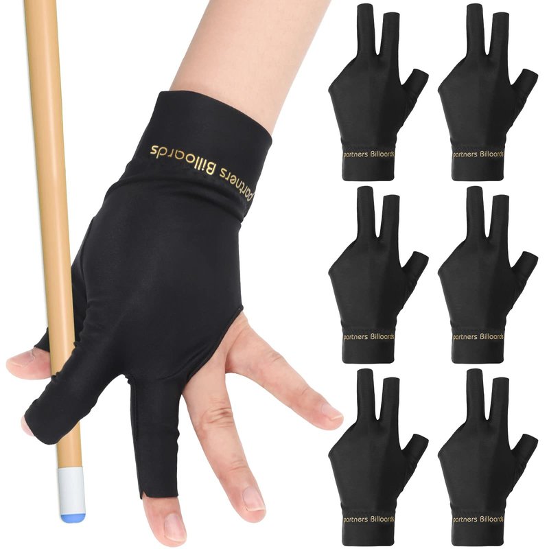 Pengxiaomei 6 Pcs Pool Gloves Billiards Left Hand, 3 Fingers Shooters Snooker Cue Sport Gloves Billiards Glove for Women or Men Billiard Accessories