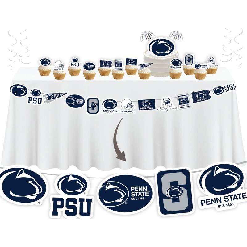 Penn State Party Supplies (42 Pieces) for PSU Graduation, Tailgating and Birthday Party Decorations with Penn State Banner with Penn State Cake Toppers Decorations (Penn State Nittany Lions)